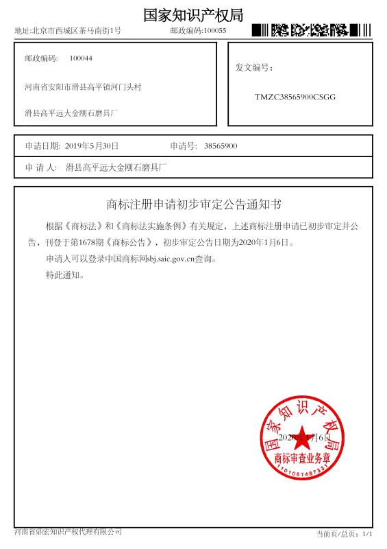 商標注冊申請初步審定公告通知書